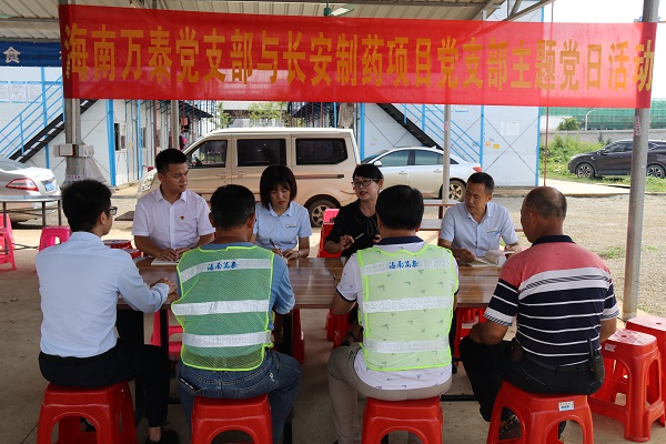 為提升公司基層黨建工作水平,激勵引導黨員立足崗位做表率,不斷推進自貿(mào)港建設作出新的貢獻,海南萬泰公司黨支部于2020年9月9日上午組織黨員深入在建項目長安制藥美安科技新城新廠建設工地,與長安制藥項目黨支部聯(lián)合開展了一次接地氣、入人心的專題黨日學習活動,主要是以學習海南自貿(mào)港建設總體方案為重點,大家結(jié)合各自實際交流和分享了學習心得體會,一致感到自貿(mào)港建設給企業(yè)發(fā)展帶來了紅利,為老百姓帶來了實惠,作為企業(yè)的一名共產(chǎn)黨員應該即當好自貿(mào)港的建設者,又要通過模范帶頭作用,當好自貿(mào)港建設的推動者。萬泰公司黨支部副書記孟晨、長安制藥項目黨支部書記張蕾及項目黨員、入黨積極分子參加了活動。