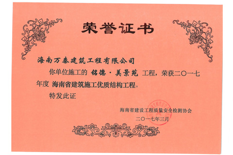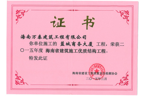 您當前所在位置: 首頁 > 走進萬泰 > 公司榮譽 > 省優(yōu)質結構